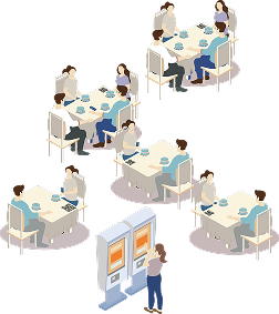 Let customers place and pay for their orders independently, reducing the queue and improve efficiency of your staff